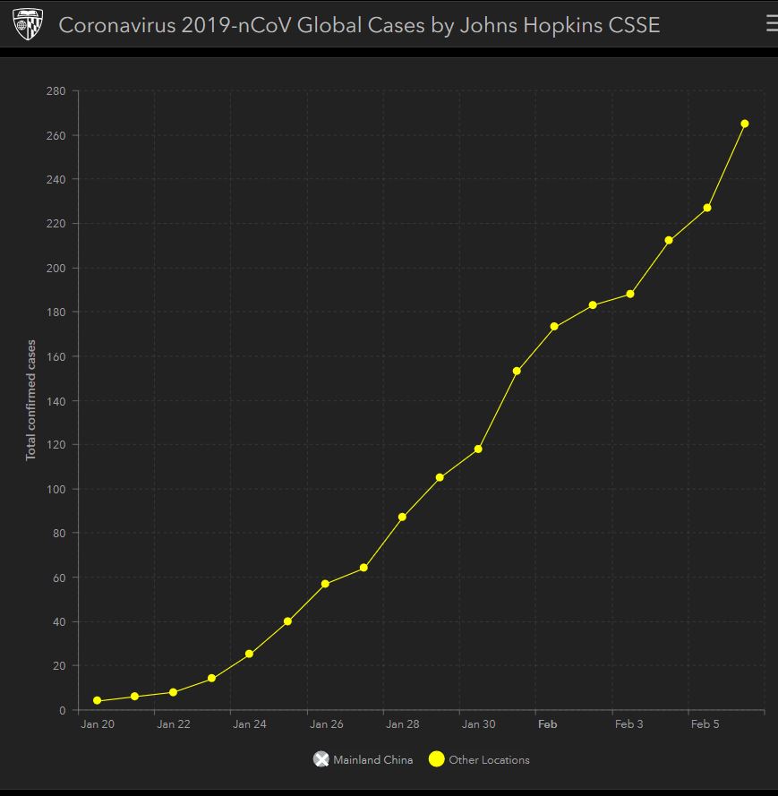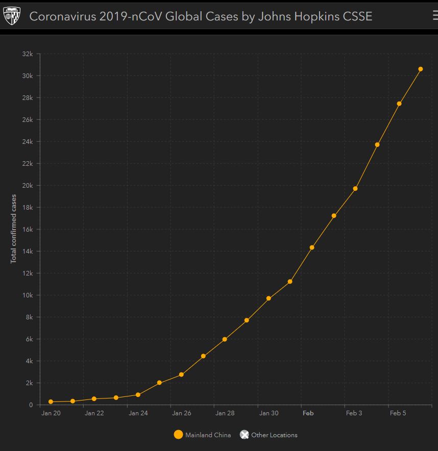 It's also 14 days since Hubei was effectively quarantined. It must feel like it's been a lot longer for the people stuck in their homes there, but if that cruise ship currently moored in Japan is anything to go by, that quarantine should have reduced the Ro rate in Hubei from what it might have been if people were still traveling on buses and trains and going to work in a busy factory, or to school etc in close contact with dozens or hundreds of other people.