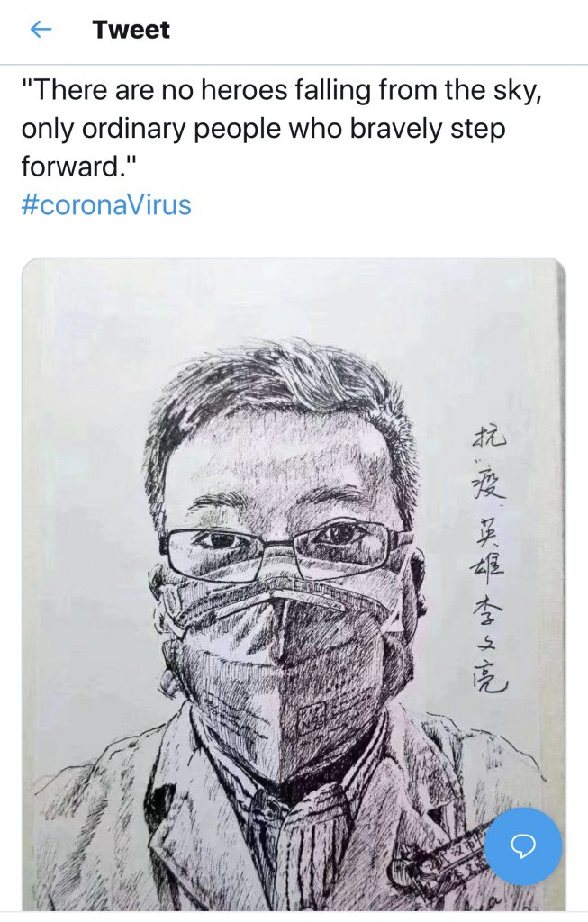 ...More tributes to Li Wenliang from Chinese social media: "There are no heroes falling from the sky, only ordinary people who bravely step forward."