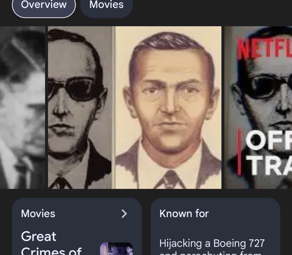 After watching the Netflix series I realized halfway through that the sketches of the zodiac killer and D.B Cooper look quite similar. When comparing the timelines too, after he sent the cipher with his name in it, it was exactly 1 year 7 months and 4 days that the D.B Cooper incident took place. It is also quite odd if you assume the “D” in D.B cooper stands for Daniel. If this is the case, there are exactly 13 letters in Daniel B Cooper which is the exact number that is found in the unsolved cipher. It has exactly 13 icons/letters in it. This is all speculation of course, but there is some correlation between the two, and doesn’t seem too far fetched. Maybe he feared the police would crack the cipher and found out it was him who committed the murders. As a finale act, he decides to drive to Oregon, which is around 13-14 hour drive from San Francisco. From there he takes a flight that was going to Seattle Washington at the time. I also found it odd that he too threatened the use of a bomb just like zodiac killer did in one of his letters. His identity too has remained a mystery. This also an odd coincidence because both the zodiac killer and D.B Cooper were never identified. I also find it odd how close together the events take place between the murders and the flight hijacking. I understand that both the men’s crimes are quite different, but maybe the zodiac was scared to get caught, therefore he opted to hijack a plane, steal the money and go into hiding. Maybe he thought if he hijacked a plane instead of robbing a bank he could more easily have gotten away with the robbery because it’s not a common thought to rob a plane. Most people think of robbing a bank or different means of stealing. Both men seemed to be intelligent, calculated in their actions, and had everything well planned out in their crimes. Again, this is all speculation and just my thoughts on the two cases.