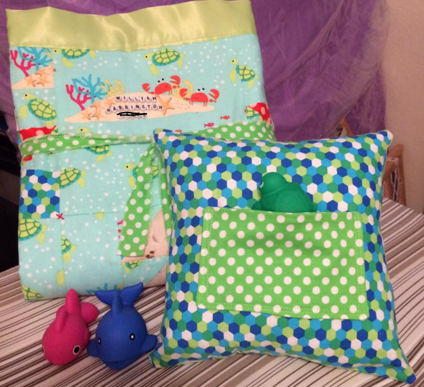 So, all the babies & toddlers in my bubble get a blankie and pillow. The Moms are over the moon happy and love that I make them so big. This quilt is about 44” x 58” plenty big for naps and lots of fun draping over chairs, etc.