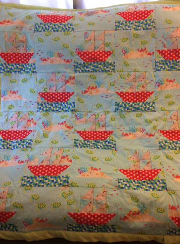This is the turtle quilt I made for my daughter's friend. It is a sailboat block. The husband was/is a turtle researcher. The wife was from England.