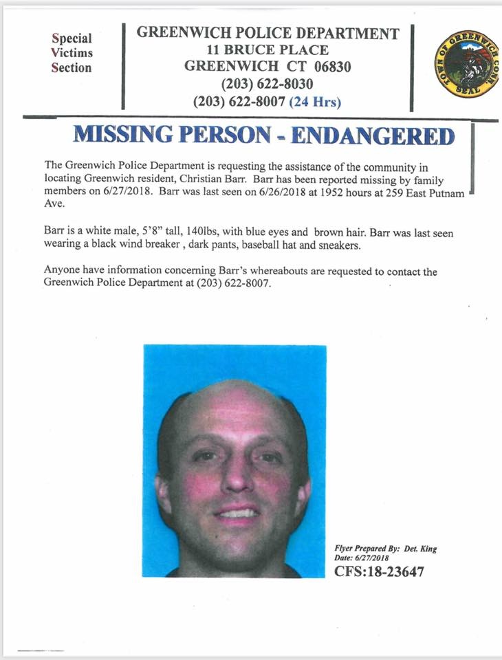 Police are looking for 42-year-old Christian Barr who was reported missing by his family members on Wednesday. He was last seen wearing a black windbreaker, dark pants, a baseball hat and sneakers on Tuesday shortly before 8:00 p.m. at 259 East Putnam Avenue.