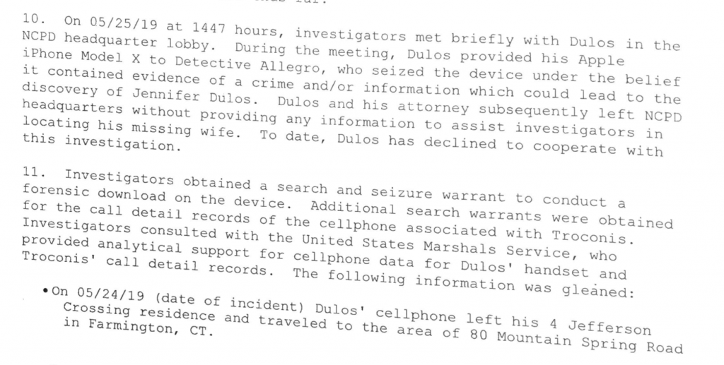 Remember FD’s little kitchen interview? (Now stick with me here, I’m going to push the envelope on how many layers of deviousness and pre-planning we can believe.) FD flat out told everyone, that he KNEW he would be a suspect in JDs disappearance. But don’t forget, we are analyzing the situation with the ‘given’ that FD killed JD. So when he says that, he is saying he knew he would be looked at, WHILE he was planning the murder. Every step he made took that into consideration. Now back to the visit to the Police Station. Here’s how he used that moment for HIS plan: yes, it fulfilled his need to look like a concerned dad, but it also gave him time to screw up LE and any future arrest and court case. When he went to the meeting, he TOOK his phone with him, he GAVE it to them. He knew darn well they were not going to hand it back to him. He was sure to ask for it back before he left, again knowing they weren’t going to give it back, so later he could claim, as NP put it, the police “stole” it. All I have to say is Appeal, appeal, appeal. Or at the very least, all evidence from it, or leading from evidence found on it-thrown out. Very telling is the fact , as the warrant notes, FD did not cooperate with the investigation. He only went to the police department to fulfill his plan; he looked like an anguished dad and he set the grounds for evidence to be thrown out and , if needed, an appeal.
