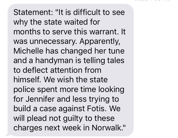 Fotis Dulos’ attorney, Norm Pattis, sent me this statement regarding his client’s arrest. Pattis is attempting to downplay the new details that came out in the arrest warrant, but I think it’s pretty clear police are building their case towards a murder charge.
