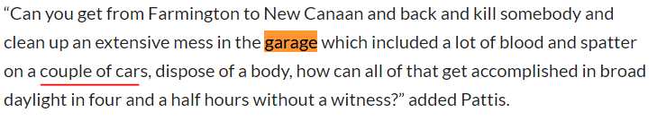 That’s interesting! Also I believe I have seen a couple of places either in MSM or the AW(s) that the Chevy Suburban JD was driving and used to drop off the kiddos that morning was a RENTAL and not owned by JD. Like the house on 69 Welles Lane she was renting it I believe. Not sure how that works with the rental or leasing company once the vehicle becomes part of a crime/crime scene(s). That vehicle is still in possession of LE I believe. The defense has a right to inspect all evidence collected with their own experts and all evidence collected must be preserved not only for the defense BUT in case there is an appeal. I am pretty sure I am right on this but if not I owe you a quarter :D