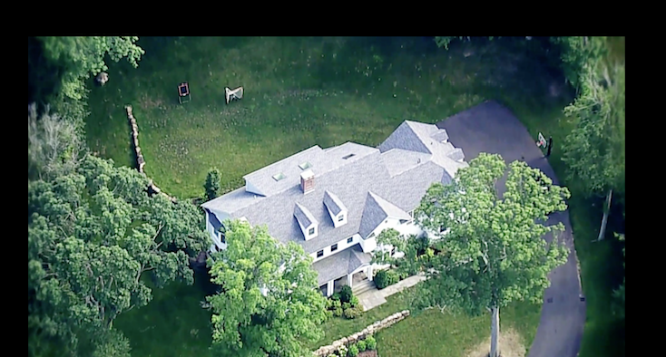 For those thinking about entry to the Welles property I took a simple screen shot from Dateline footage of the Welles yard taken from a drone I think. It gives a good idea of the closeness of the wooded area to the rear of JD house and the location of the 3 bay garage setup and the upper driveway.