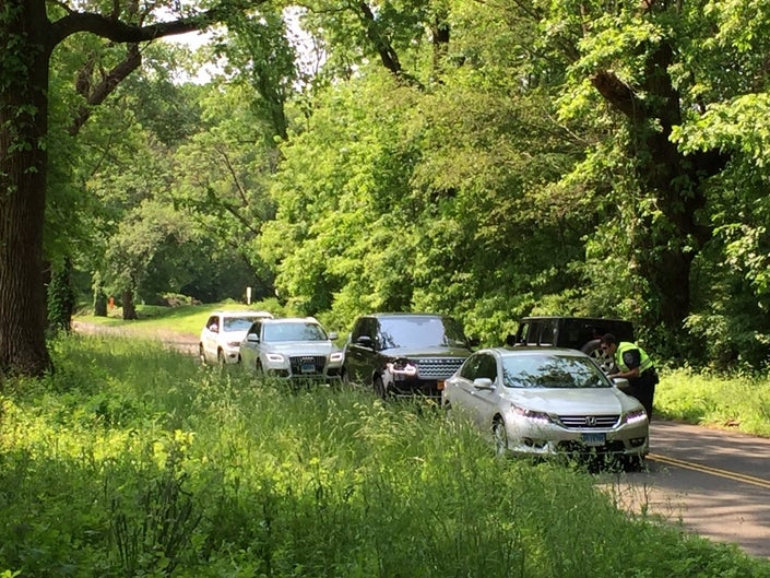 here is a picture of LE on screening drivers on Lapham Rd following JD disappearance. Looks like plenty of coverage for travel through the woods south of Lapham Rd to the train tracks to get to Welles and exposure to poison ivy.View attachment 205027