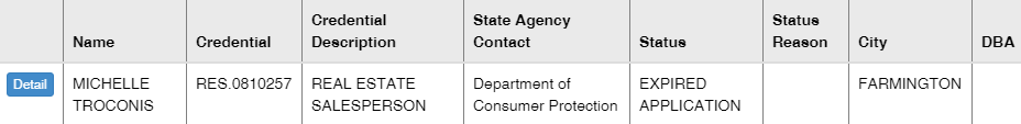 As a former CT Realtor, I knew where to look. I edited my original answer because now I believe she didn’t pass the exam.