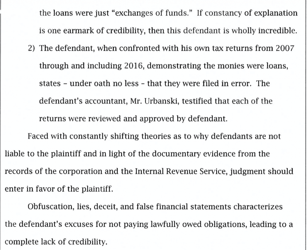 Obfuscation, Lies, Deceit, and False Financial Statements Characterizes the Defendant's Excuses for Not Paying Lawfully Owed Obligations, Leading to a Complete Lack of Credibility
