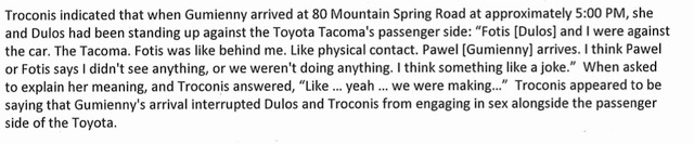 Wow, I had not seen this before. So they were having sex when EE arrived, against his Tacoma, just after cleaning up the blood out of the car?