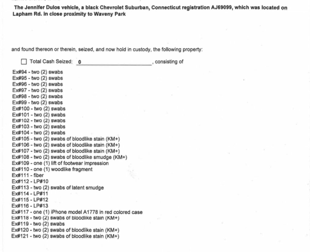 Long ago, a friend of a friend of a friend said the police thought Dulos hired someone- which never felt right - professional murderers leave the body and don't clean up. But now I think the rumors along those lines must have come from evidence of an accomplice in cleaning, and could be related to the mention of Fotis' Chevy on Thurton. Although except that it was after May 17 we don't know when it was seen.