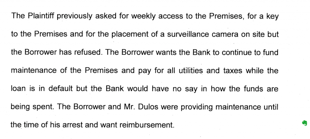 Fd had 'no equity' in the property in New Canaan (is this in compliance with bank lending practices?). Fd also refused to allow the Bank to have a key to the property to check on the status of the project and refused to allow a security camera to be installed so that they could monitor the property as well (wouldn't this generate a default in the underlying lending documents as well given that this appeared to be within the ability of the Bank to do?).