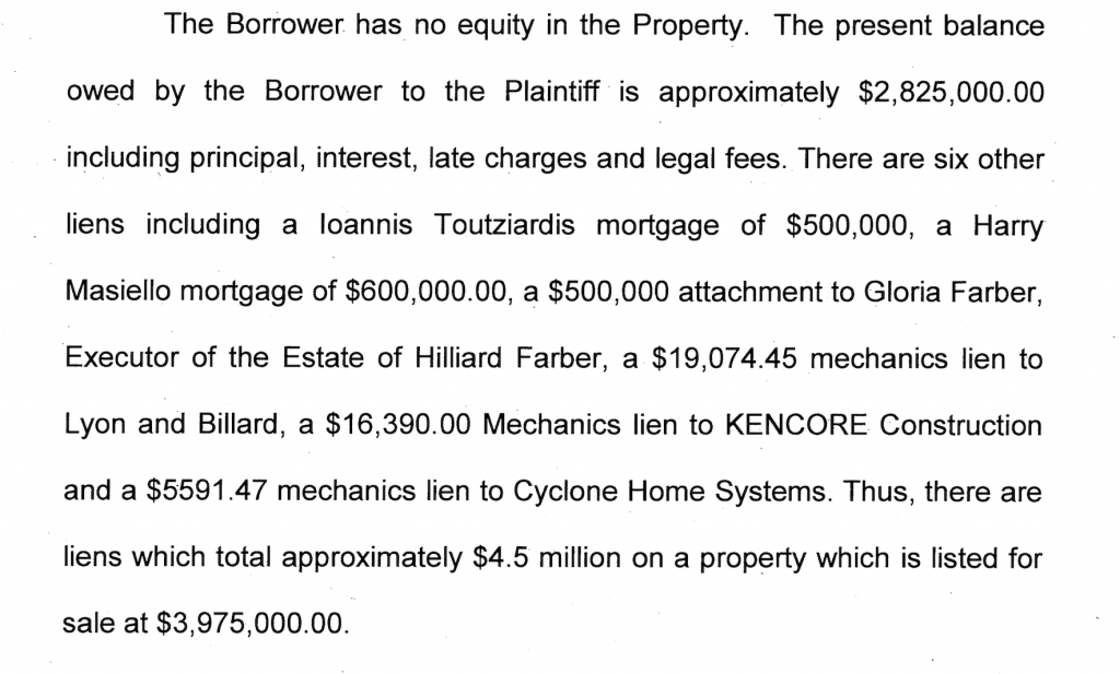 Looks like this action is sadly a day late and many dollars short! Why aren't we seeing a simultaneous Motion from Danbury Savings Bank for Bank Fraud in the event that the financial statements of Fd/FORE weren't properly submitted? How was Danbury Saving Bank able to undertake a loan of this size (large for this particular institution IMO) if the Borrower hadn't prepared 1040s for 2 years and didn't have reviewed or audited financial statements? Is this loan to FD/FORE in compliance with the lending practices of The Danbury Savings Bank?