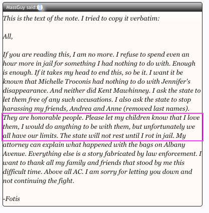 IMO, I think this was a stunt that backfired. FD sent the GF out (just like he had MT do) and the GF returned a tad too late. Also, there’s something about FD note that doesn’t sit right. May just be me but it sort of looks like it was written by a female and I find it really odd that it’s dated (as if it was going to be used).