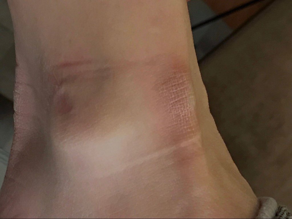 Here’s the photo shown in court to Judge White of Michelle Troconis’s bruised ankle underneath her GPS monitor ⁦@WTNH⁩ Judge agreed to less strict house arrest but says probation has to work out the issue with the bracelet ⁦@WTNH⁩