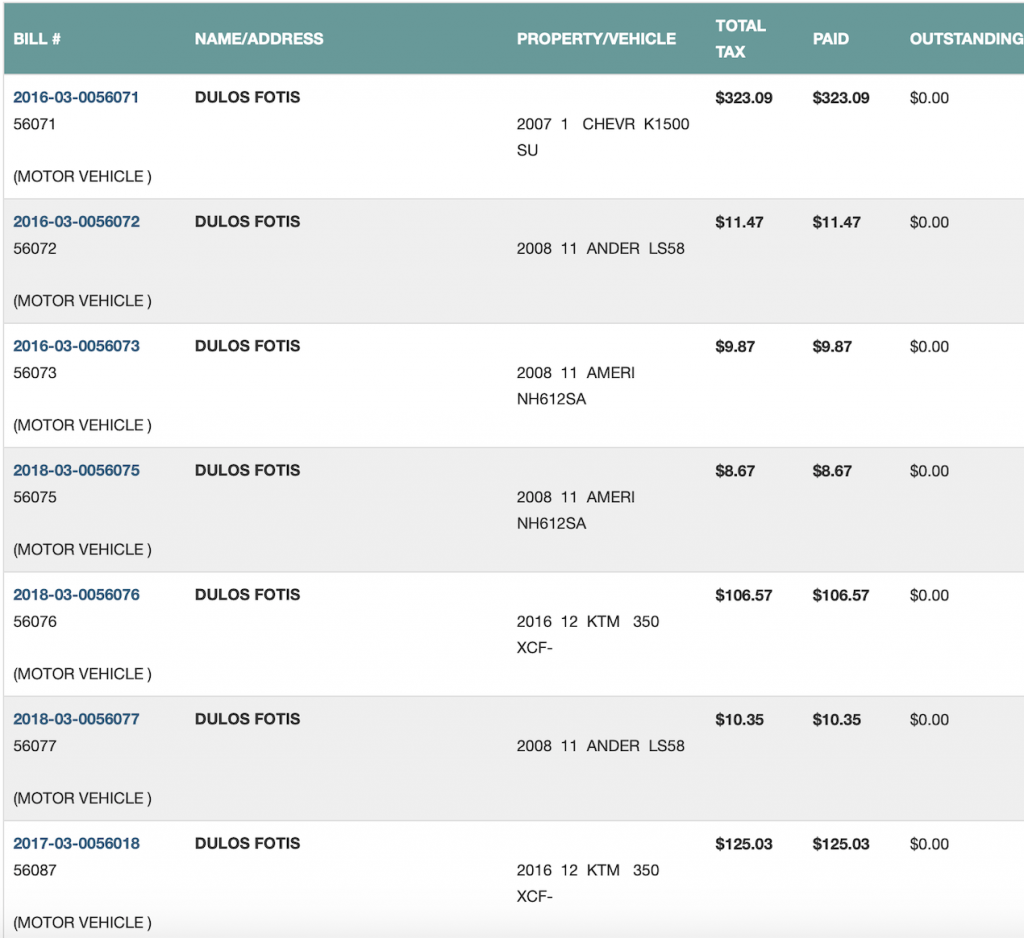 Here are the tax records for FORE vehicles.