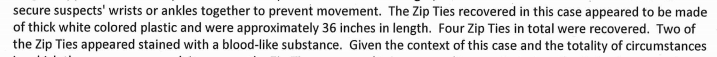 The AW only specifies the term "blood" in 3 instances in the table shown above. It doesn't specify in the above that there was blood on the zip ties but it was on the zip ties according to this: