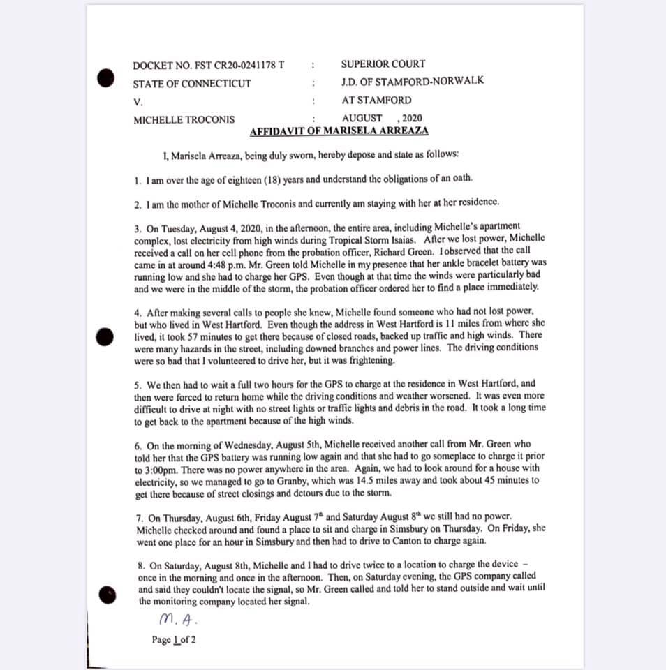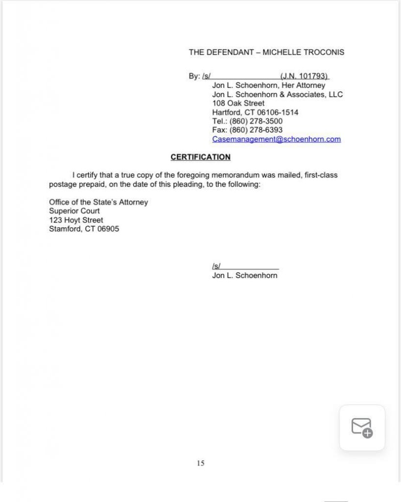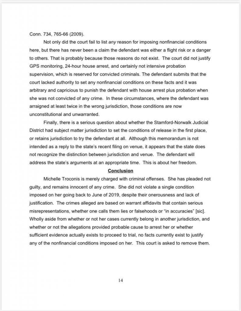 Michell Troconis’ attorney has filed a new memorandum ahead of her Friday court appearance where he’ll argue for the non-financial conditions of her bond release to be relaxed. Specifically he wants no more GPS monitoring anklet, house arrest ended, no more travel restrictions within the US, and an end to her reporting to probation while on pre-trial release. Attorney Jon Schoenhorn says after going through some of the discovery, the evidence against his client is far weaker than the court was led to believe. Among the arguments, he points to videos he says show Troconis was only in the car with Fotis Dulos on the day Dulos disposed of evidence and that she herself is never seen doing it.
