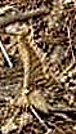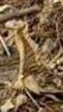 The red flag marker was one of four surrounding the depression in the ground nearby. It does not necessarily have anything to do particularly with that item I have pointed out.If it is a dried curled up leaf, why is there a red flag marker right next to it?