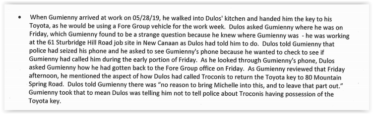 What was FD doing in the basement to prepare the home for that meeting? The basement! Does a basement need cleaned? Why did he spend so much time in the basement? How was cleaning the “coffee” from PG’s Tacoma preparing the HOUSE for the client meeting?