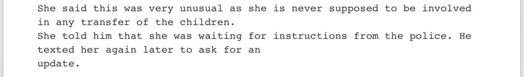 I recall the head master that greeted them every morning. He spoke of Jennifer dropping her children off every morning. And, a teacher that noticed she was painfully thin and wary.
