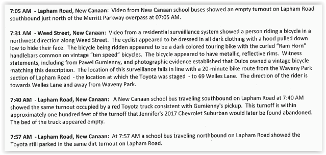 @Dmcp p The only video LE mentions is one captured on Weed Street of a man on a bike resembling Dulos...