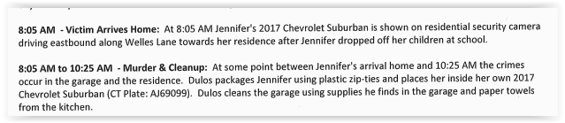 Below from the arrest warrant shows that FD's Toyota was parked on Lapham Road after 7:05 and was there at 7:40.