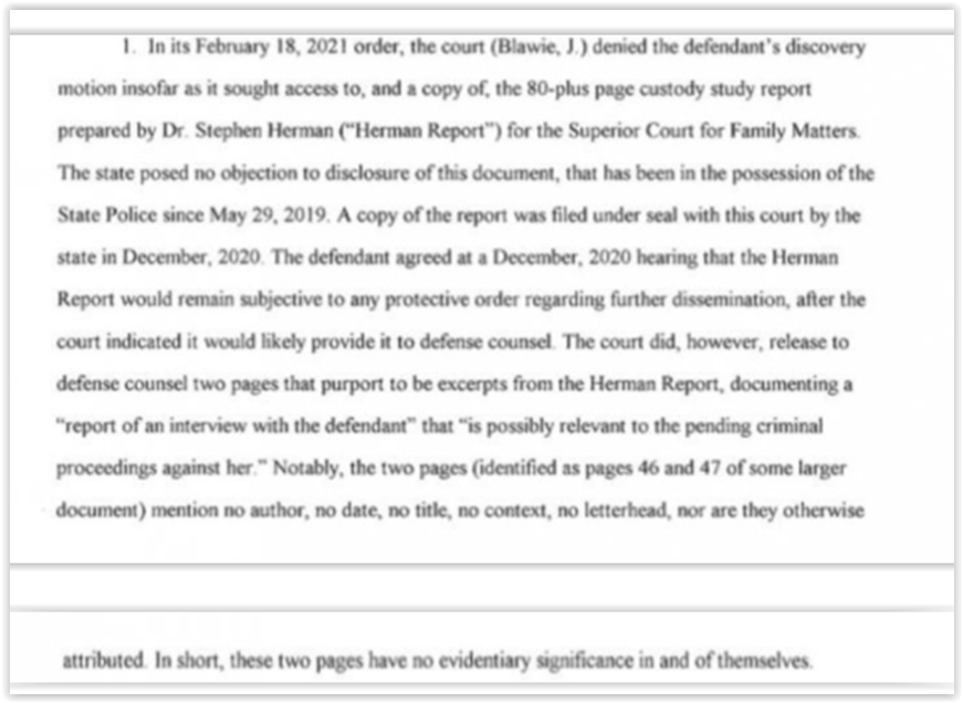 Now, he says he's entitled to attach any evidence in motions to the court and release those motions with attached evidence to the press. That report was never accepted into the court record. And unlike JS's current motion, the reason it wasn't entered is because Dr. Herman left the courtroom in a huff and refused to be cross-examined by JFD's attorney. He did not want to answer questions about who he interviewed, how he drew his conclusions, etc. FD was not supposed to be in possession of a copy of that report. The report was not uncovered by the police, but by Attorney Smith when he went to get FD's passport to make bail in June 2019. It was in NP's and Smith's possession until they turned it over to the court. (LE did not find FD's copy while "rifling around in FD and MT's office.....JS can't get anything down pat.)