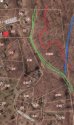 *I put another red dot at the Jeff Xing address. The green line here is the powerline, the red line is the U-shaped path, and the blue line is Metacomet Trail.