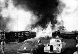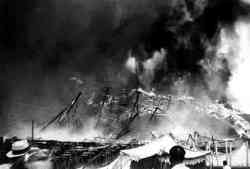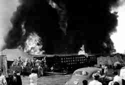 When his uncle Stanley noticed the fire, he led his family toward the main entrance and found that a steel animal runway at the NW corner of the big top blocked their way. Stanley pushed Frances, Elizabeth and Anthony over the chute and got them outside, then went back into the burning tent to find his sister Mary and nephew Raymond, but the intense heat forced him out.