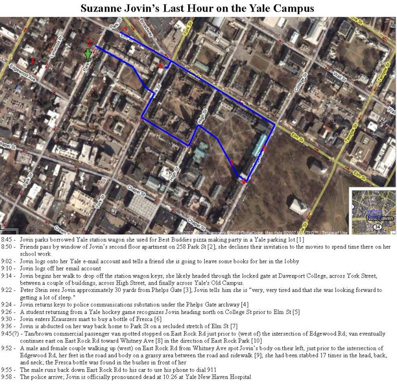East Rock and Edgehill Road (where Jovin found) to Whitney Ave and Hungtinton Street (witness) to Everit street (Santillo)...all very close.