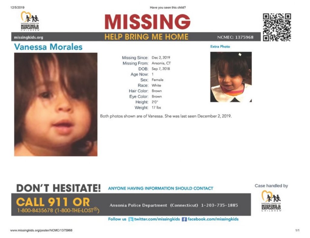 Updated: Woman's body was found in Ansonia apartment from where 1 yr. old Vanessa Morales is missing. Adult victim's name is not being released. Police are calling her case a homicide. https://wtic.radio.com/articles/news/ansonia-police-search-for-missing-one-year-old