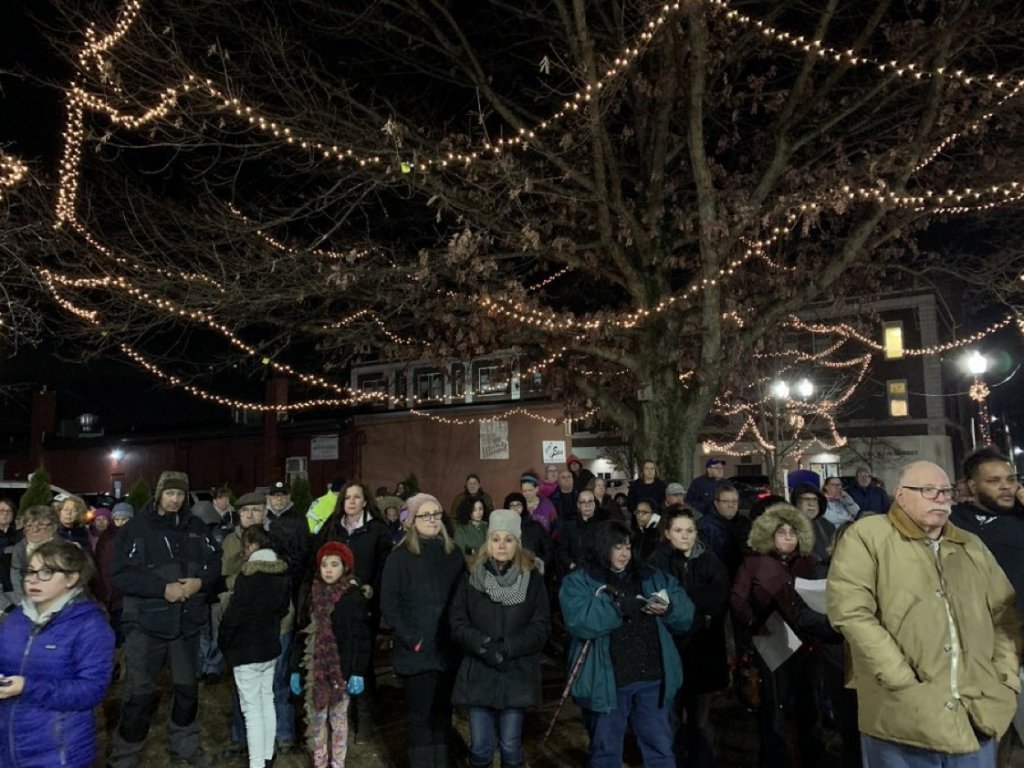 Some of the crowd singing along to “Amazing Grace” here at the vigil in #Ansonia