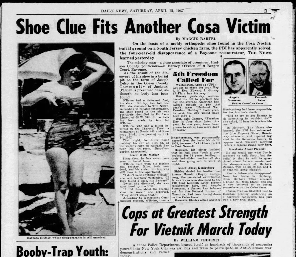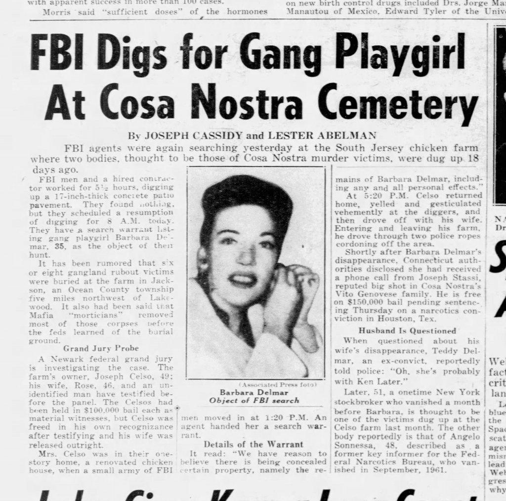 The FBI thought they would find her at a mafia body dump in 1967, but she wasn't among those found there.