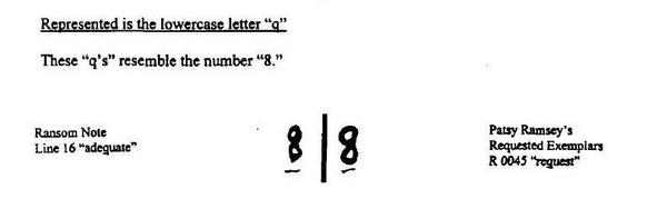 The letter "q". The ransom note "q" is on the left and Patsy's "q" on the right.