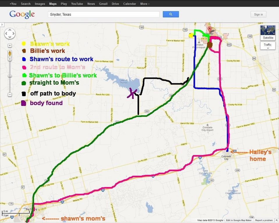 I linked to an article back a page or two that said Hailey's remains were found a mile or two from Shawn's mom's house. I don't know the scale of the map but it looks much farther than that.