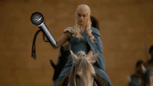 It is nice to see KK again! (It's the only "dropped mic lady" I could find. But I kind of liked her riding in on the horse like that.)