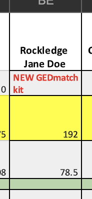 Rockledge Jane Doe, new kit, top match 78.5 cM
