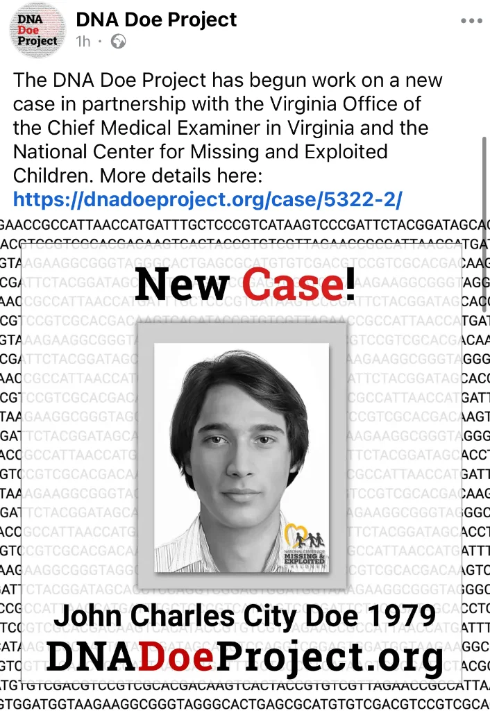 The National Center for Missing and Exploited Children will be providing funding for the DNA Doe Project to work on Charles City John Doe 1979 (NamUs #UP9398). He does not have a thread here.I get only a blank white screen when I click on that link. Can you tell me what it showed?