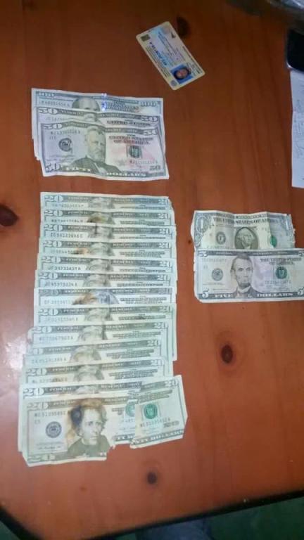And if you look at the bills behind it some of them appear to have the same mark. Like something went through all of them. Like a bullet. But would his friend have brought a gun to the Dominican Republic?