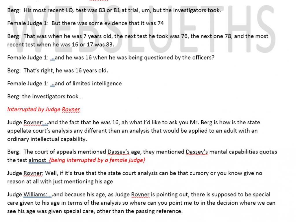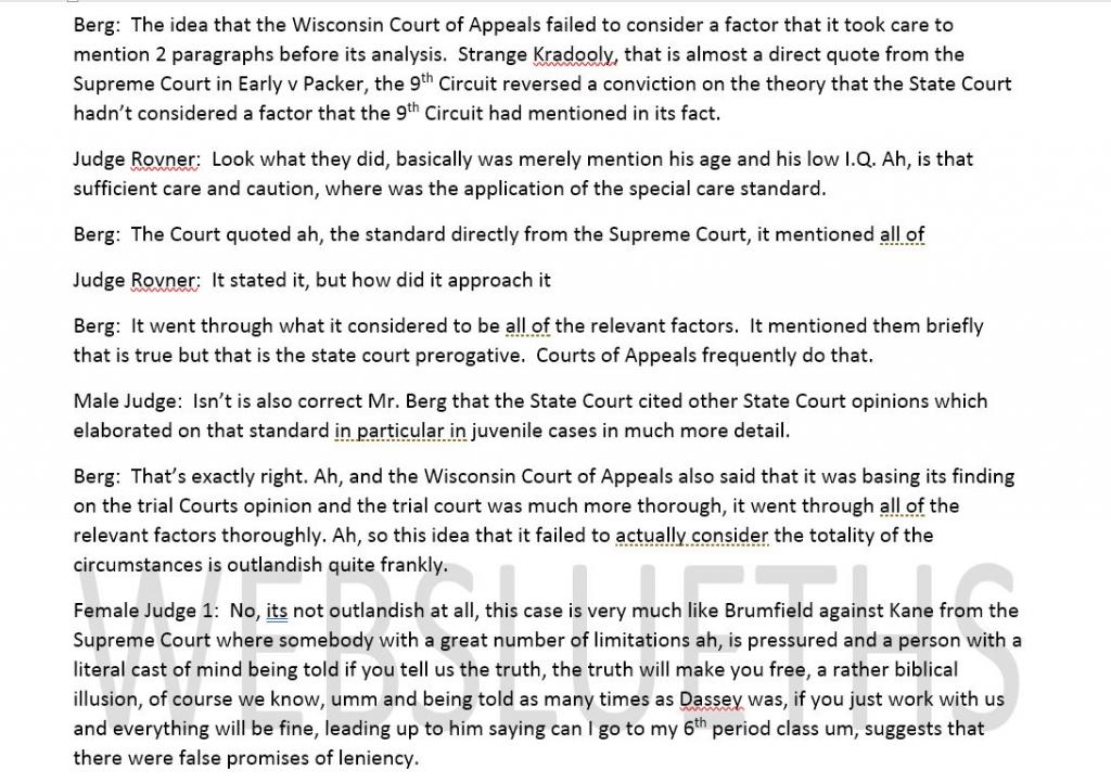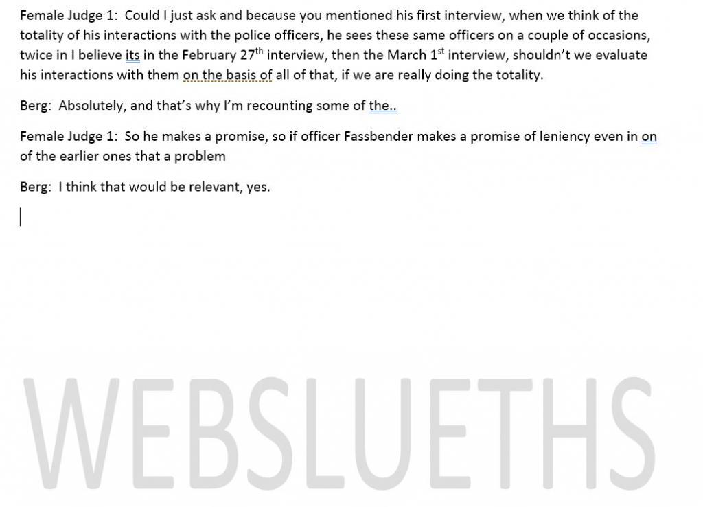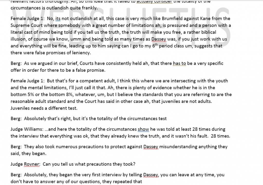 This en banc hearing is very interesting. Nirider says cops should have known Brendan had limitations b/c he couldn't spell some words