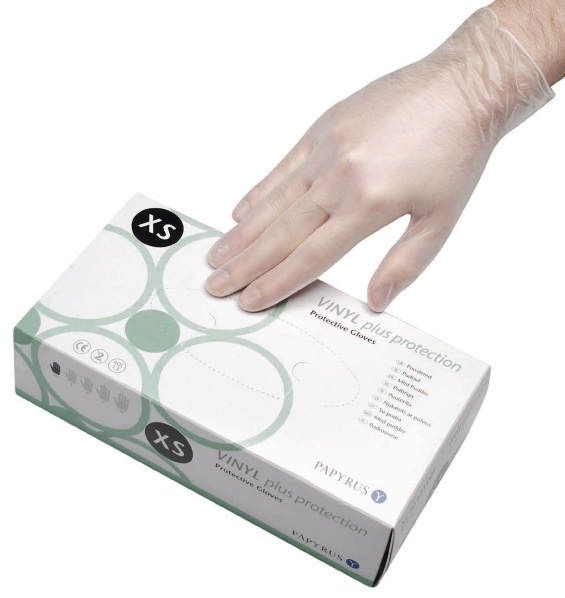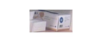 The box is latex examination gloves, size M. In our vet practice, we used ones from pkgs like this, with the gold strip at the bottom and the size M in a blue circle on the end. If I find the company from which we purchased them, I'll call it in.