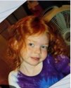 Evelyn is a 4 year old girl with red hair, green eyes and a red mark on her nose.