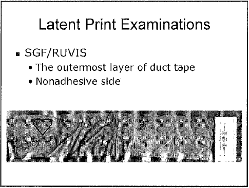 Not sure if I understand your post about prints from the Anthonys tying it back to KC, (sorry, I'm tired), but what I was referring to is the hope that there might be some patent prints from the murderer, (regardless who it is, obviously.) So, something to hope for anyway and we'll see what comes out as far as patent prints.