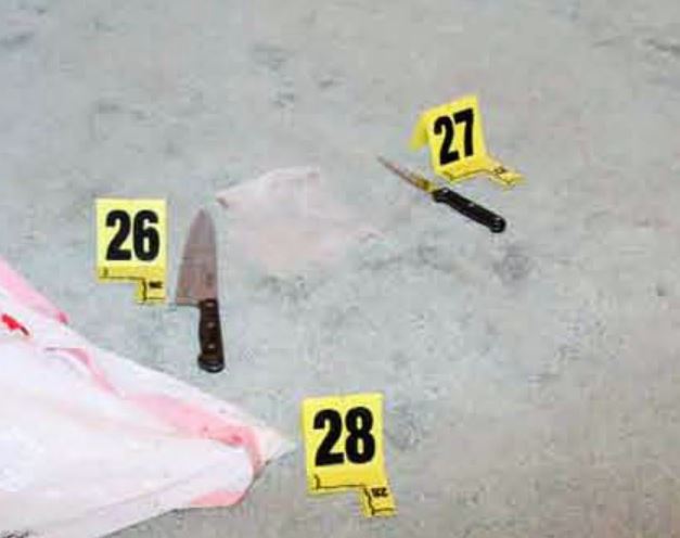 “One of the most morbid and obscene pieces of evidence in this case, as identified by Forensic Specialist Lisa A. DiMeo, is that a steak knife at the scene was covered with blood on all four sides of the handle, a few inches up… “