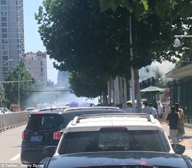 A large amount of smoke and a number of police vehicles were seen outside the vast structure in the city's north east while witnesses said they felt 'tremors' when the blast happened.