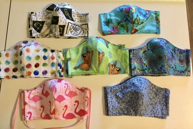 Here are 3 different styles I did before finding the perfect pattern today. I'm hoping I have enough of that pink fabric left to make myself a mask. I gave that one to a good friend who is a nurse.