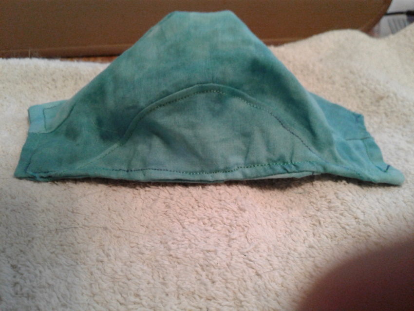 The last photo is the back of the mask, complete with filter pocket and nose-wire sleeve (which is on the right-hand side of the photo.)