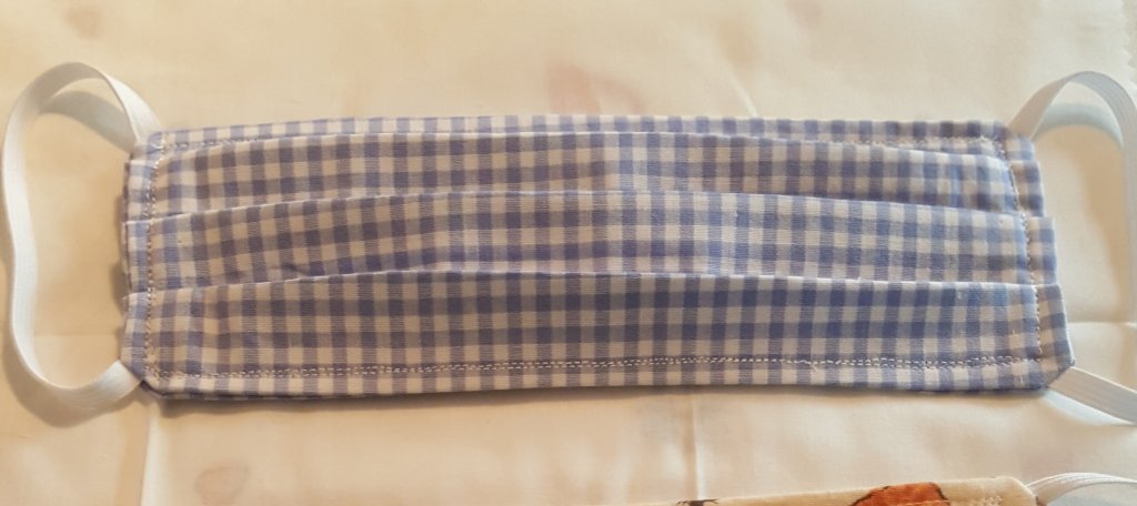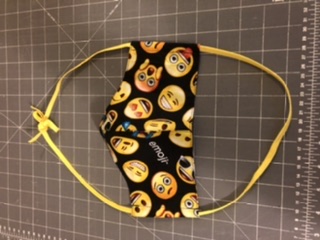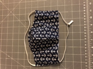 The blue anchor mask is mine that I made for me. The elastic is 24” long and I decided that is too much. I’m going to make them 22” instead. I wear glasses and can’t hook loops behind my ears. Plus running it thru the side channels makes for a snug fit.
