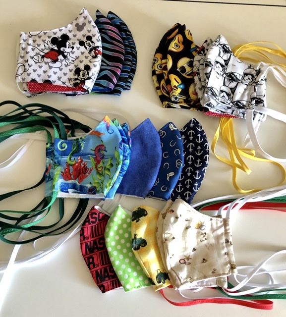 My daughter and I have made about 60 cotton face masks so far, mostly adult size but about a dozen kids' size. We use a pattern provided by the hospital that has long ties. We have a system...she cuts out the mask and the ties and I iron the pieces while she sews. We have it down to about 5 minutes a mask. We are making self-fabric ties which is more time consuming than elastic but we have a little metal thing you feed the fabric through that makes it into a binding tape shape that you iron as it comes out of the end. It's fiddly at first but once I got the hang of it I ran strips through there like a robot. Her pharmacy co-workers are going nuts over them and starting to donate the fabric for more. We probably spent about $50 on materials but the time spent together doing it is worth so much more.